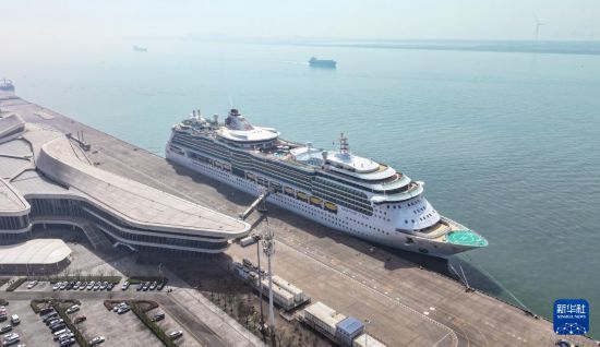 4月7日,“海洋旋律”号邮轮停靠在天津国际邮轮母港(无人机照片)。